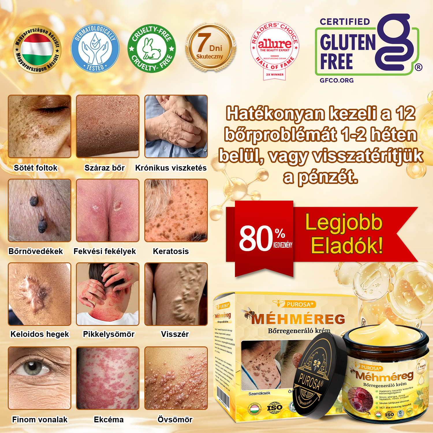🐝PUROSA® Méhméreg Bőrregeneráló Krém | Teljes körű megoldás makacs bőrproblémákra, például öregedés, ekcéma, hegek és pikkelysömör ellen 🌿✨
